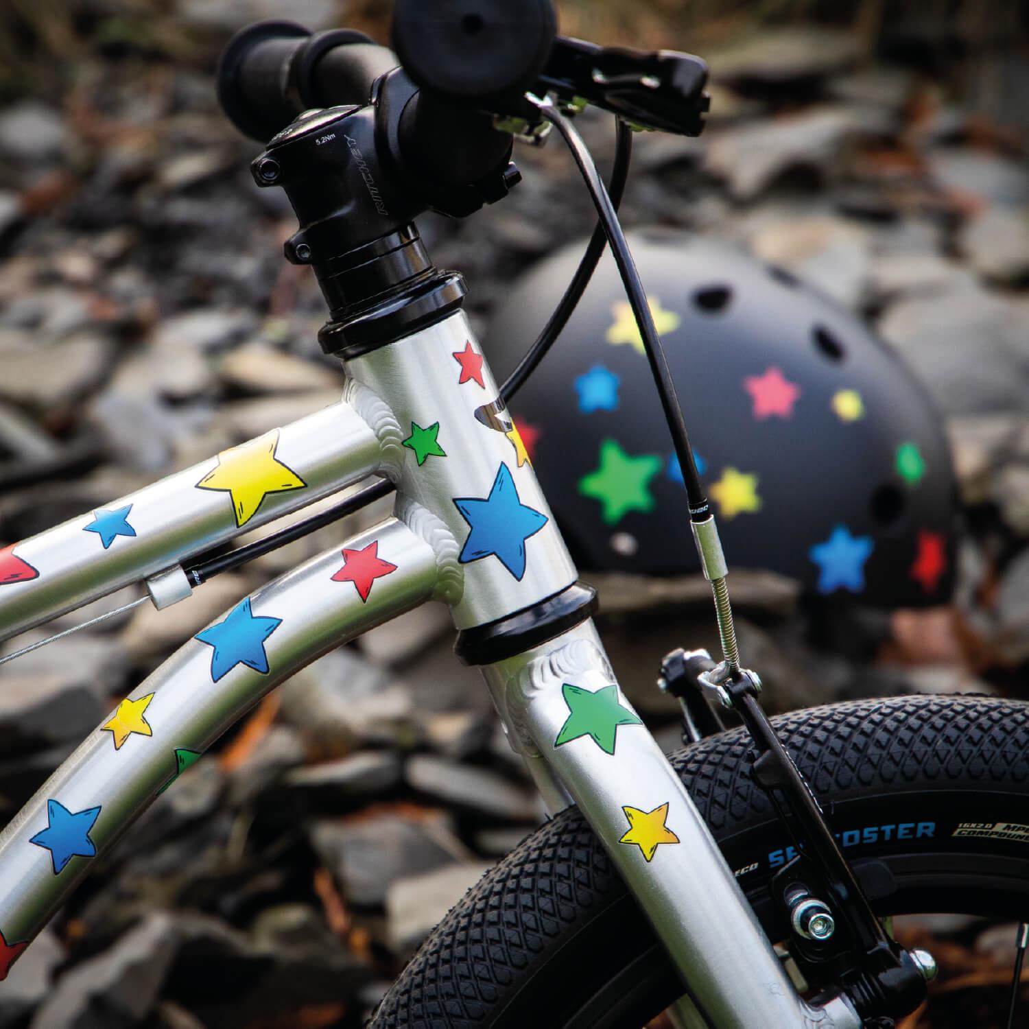 Brightly coloured and themed bicycle stickers to make your bike unique. Easy to apply and a range of deisgns that can be mixed and matched. Also suitable for use on helments, scooters, tricycles and many more applications
